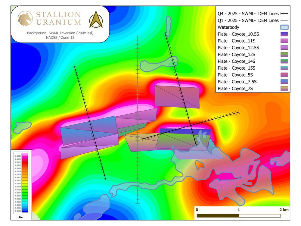 Stallion Uranium Corp. has achieved a significant technical milestone at its Coyote Target, part of the Moonlite Property in Saskatchewan. Following the completion of a ground-based SWML TDEM survey by Abitibi Geophysics, Stallion partnered with CGI to perform sophisticated joint inversion modeling. By integrating Ground TEM and larger-scale MobileMT data, CGI helped refine conductor trends and identify structural complexities that are often favorable for basement-hosted uranium deposition.